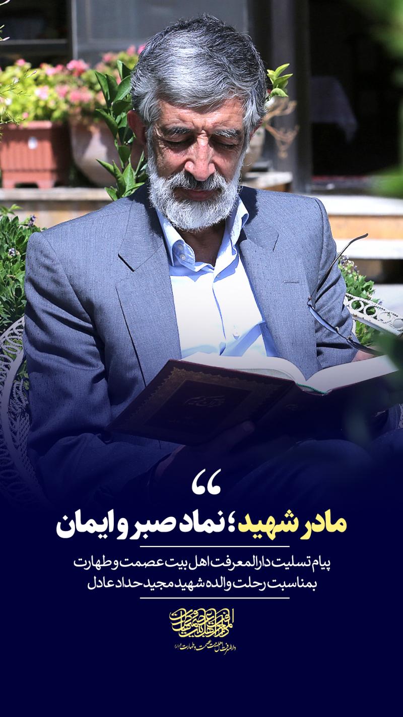 رحلت بانویی مؤمنه، صبور و وارسته، والدهی مکرم حضرتعالی ـ که افتخار مادری شهید والامقام مجید حداد عادل را نیز در کارنامهی زرین حیات خویش داشتهاند ـ موجب اندوه و تأسف عمیق گردید.
