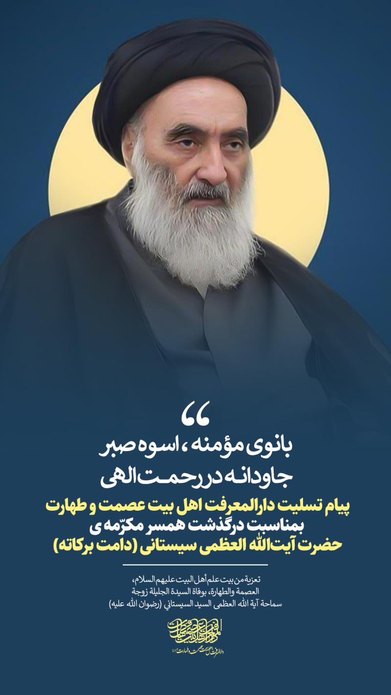 پیام تسلیت نهاد دارالمعرفت اهل بیت عصمت و طهارت (علیهمالسلام) به مناسبت درگذشت همسر مکرّمهی حضرت آیتالله العظمی سیستانی (دامت برکاته)