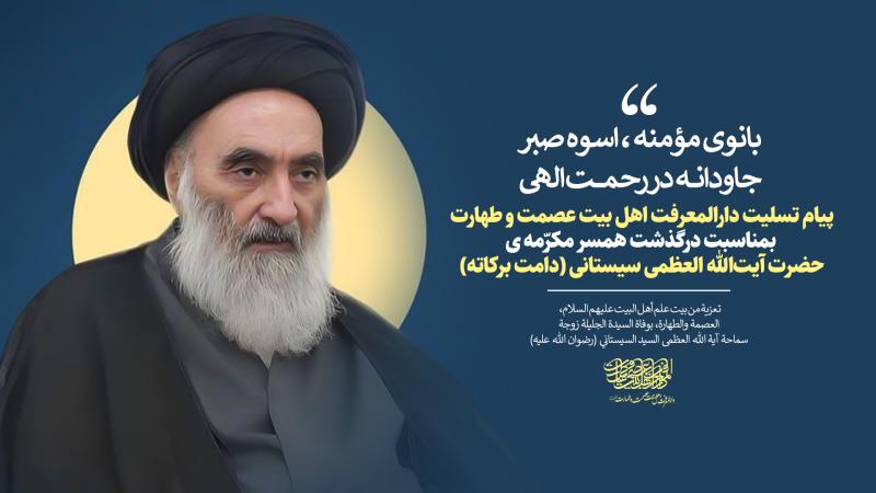 پیام تسلیت نهاد دارالمعرفت اهل بیت عصمت و طهارت (علیهمالسلام) به مناسبت درگذشت همسر مکرّمهی حضرت آیتالله العظمی سیستانی (دامت برکاته)