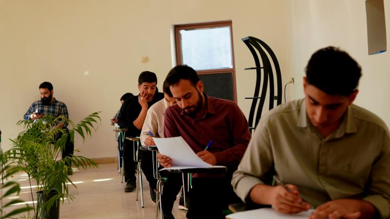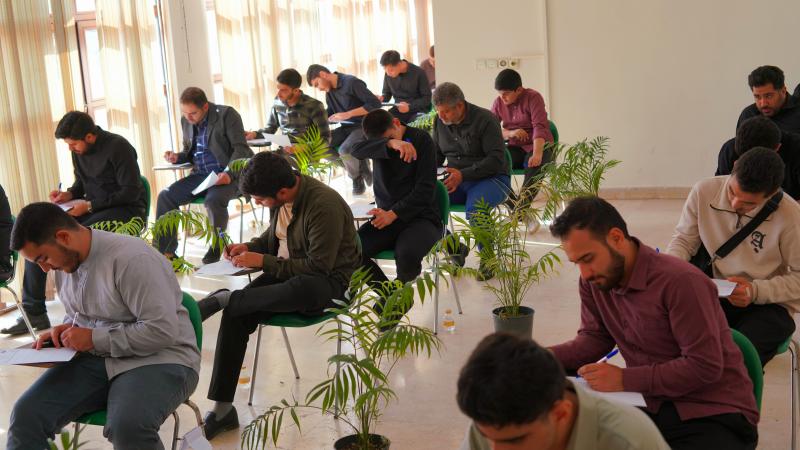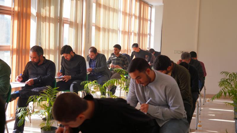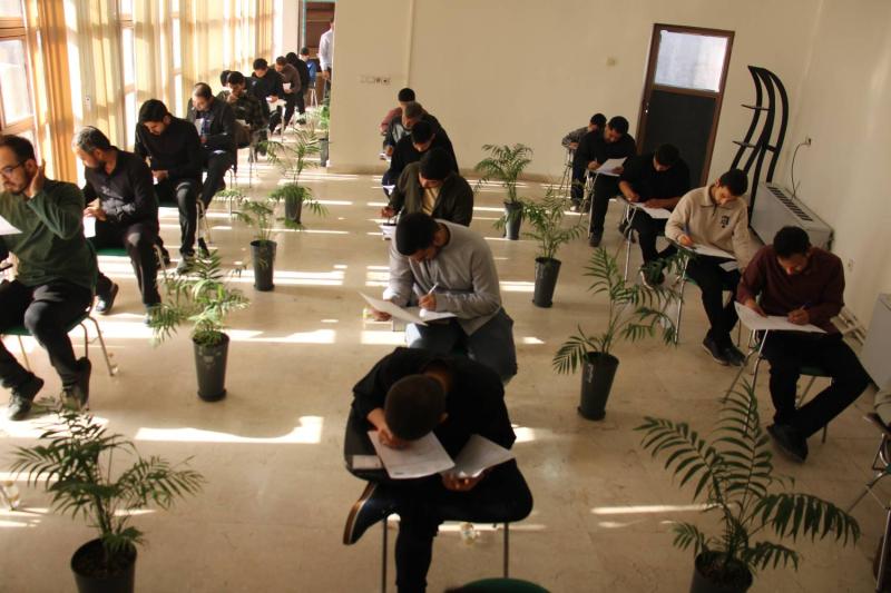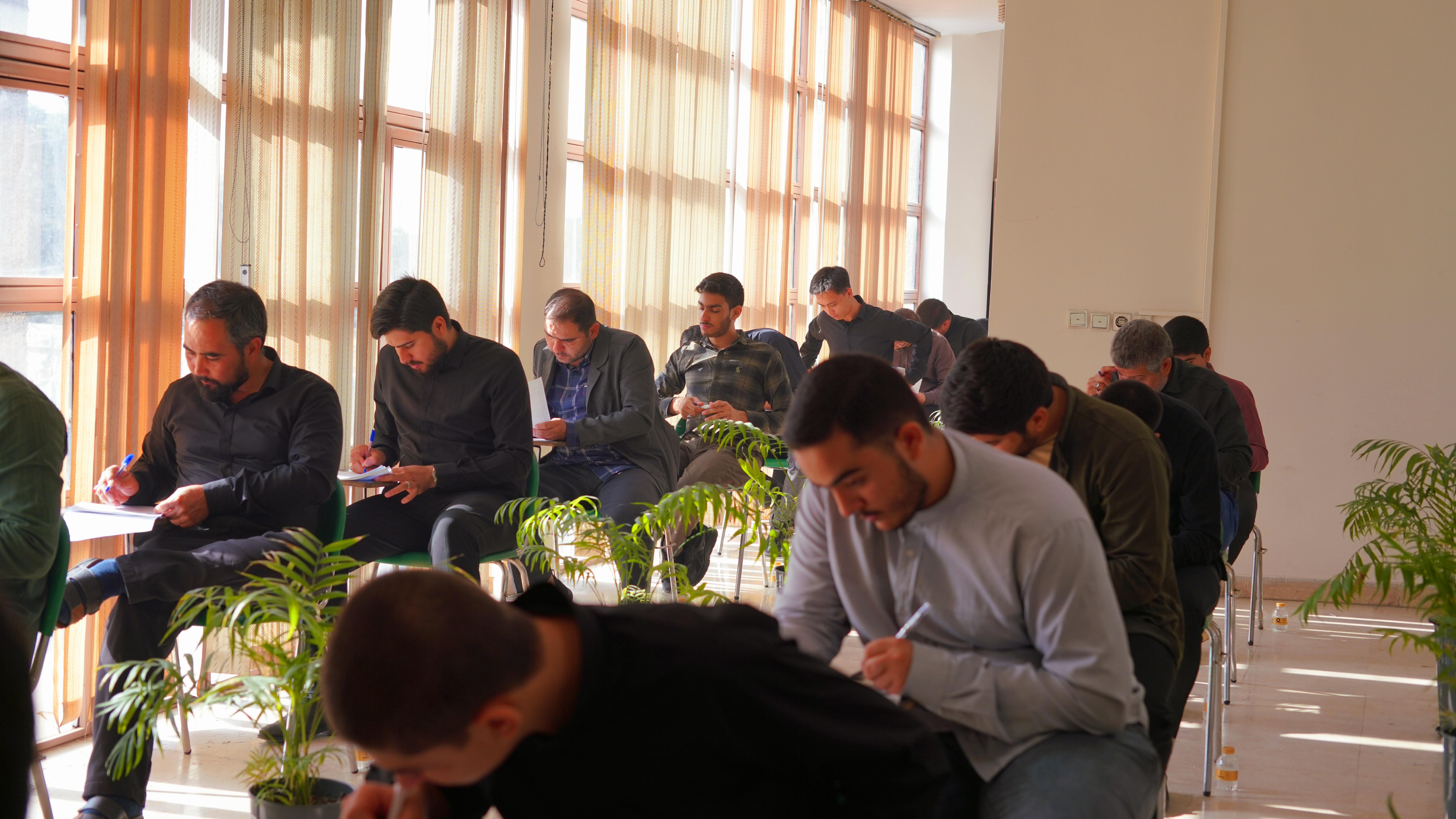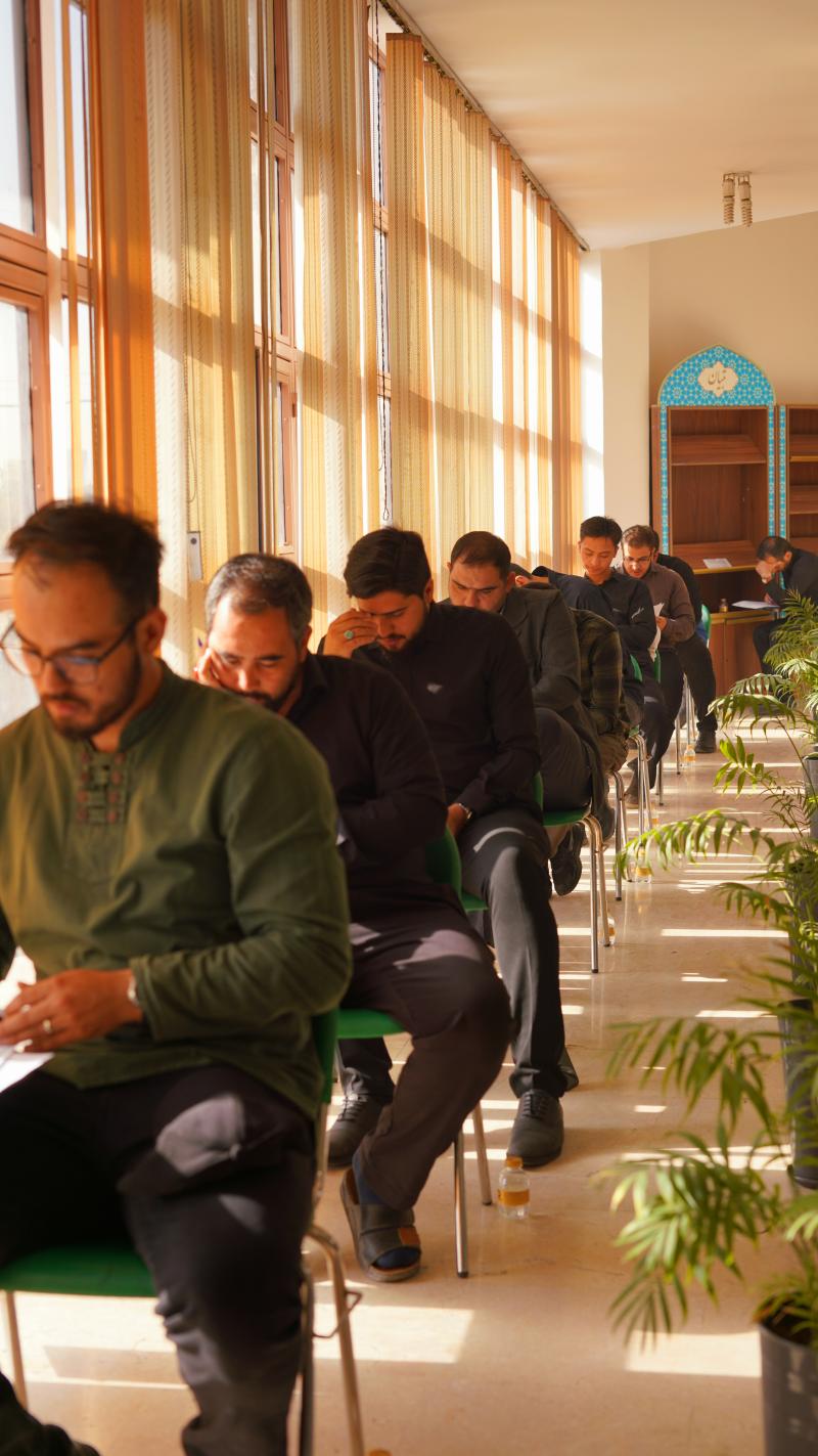 پیش از آغاز رسمی جلسه، فضای دارالمعرفت جلوهای از نور و صفا داشت. دانشپژوهان در گروههای کوچک به مباحثه علمی، مرور دروس و تبادل نکات کلیدی امتحان مشغول بودند. نشاط علمی، آرامش معنوی و نظم مثالزدنی، سیمای دارالمعرفت را در روز آزمون شکل میداد.
