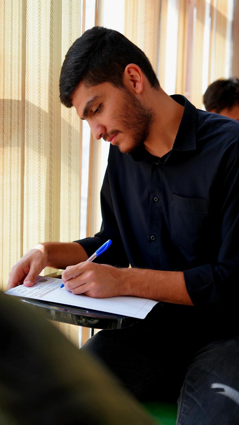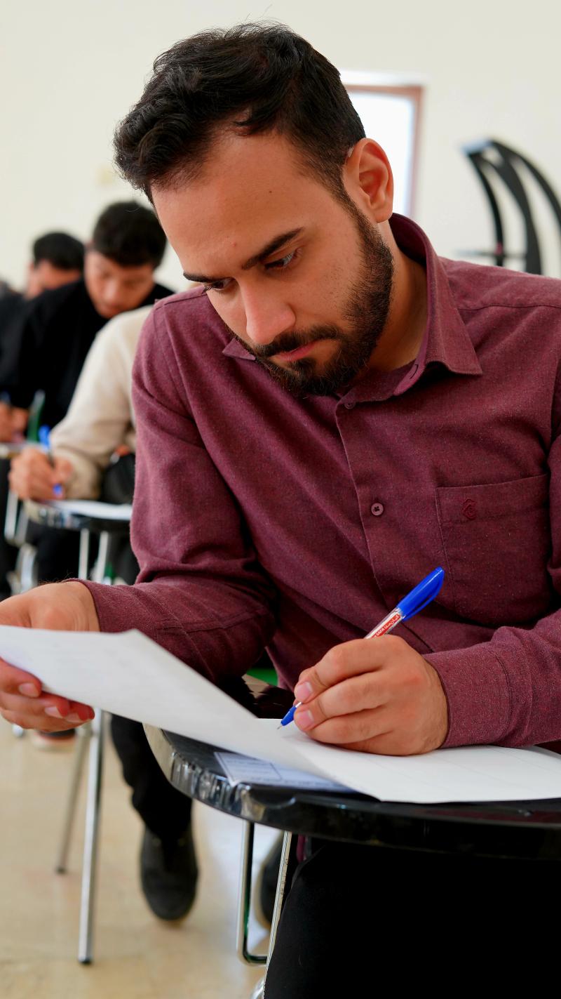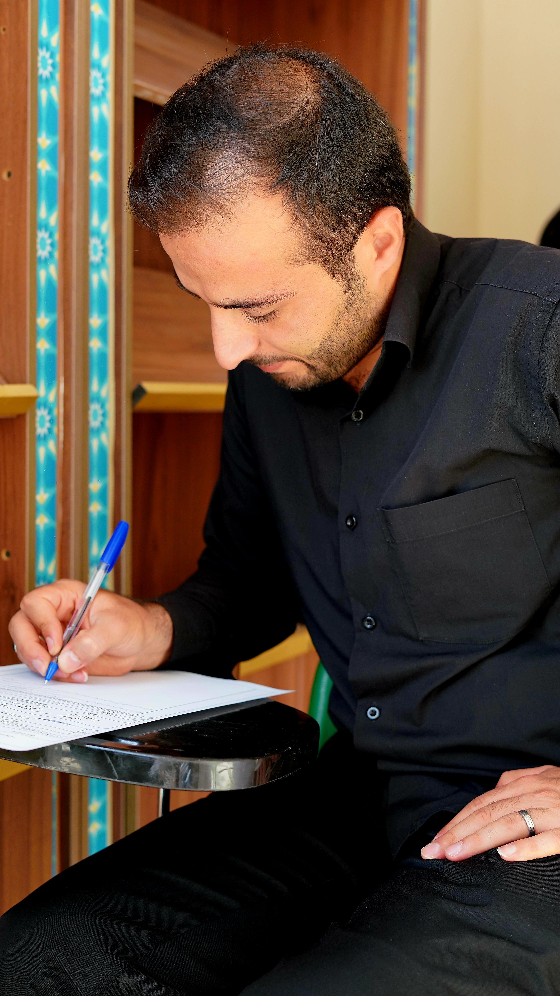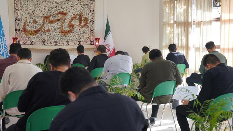 کارتهای ورود به جلسه توسط تیم اجرایی محترم کنترل و تأیید شد، و فضای آزمون با طمأنینه و سکوتی آمیخته با تمرکز علمی ادامه یافت. این نظم و وقار، جلوهای روشن از فرهنگ انضباط و اخلاقمداری در دارالمعـرفت است؛ همان روحی که از سیره علمای ربانی و شهدای والامقام الهام گرفته است.